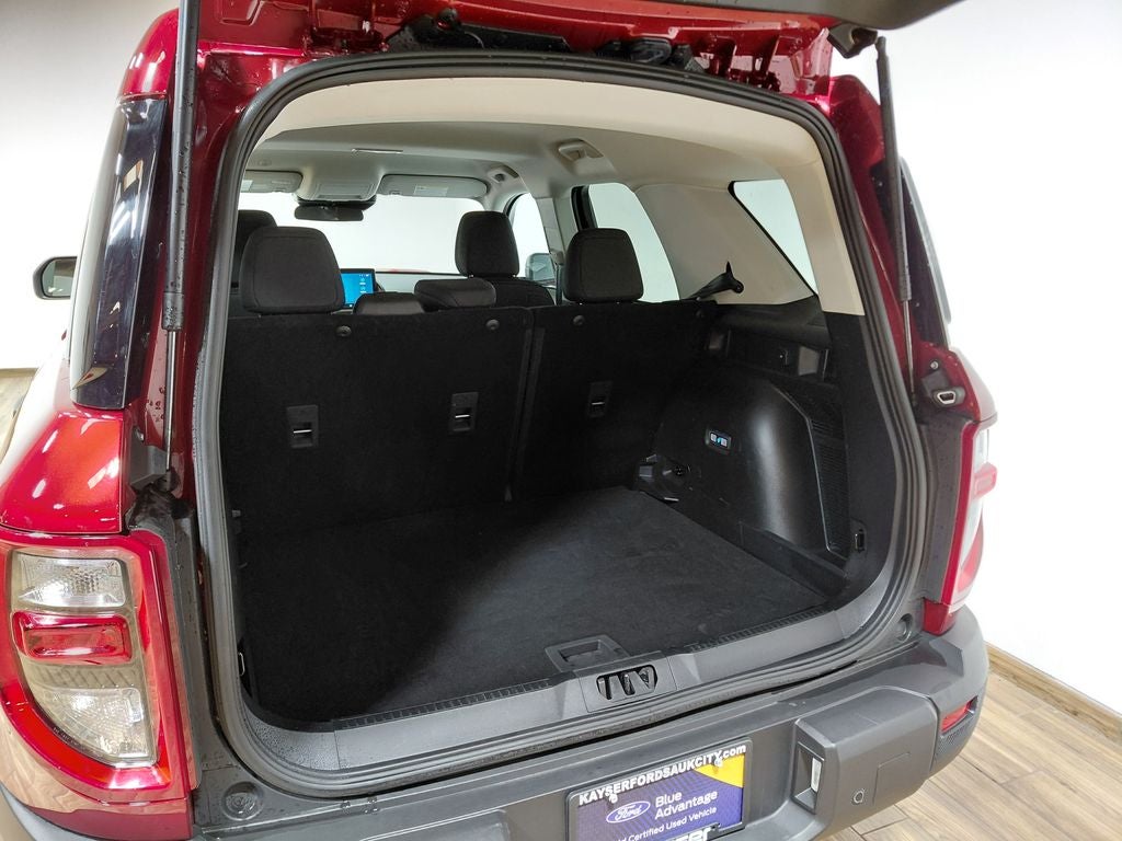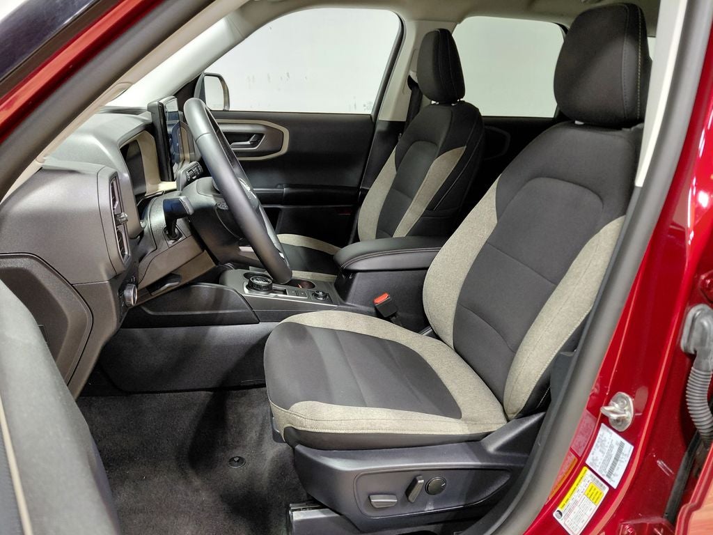 STILL UNDER FACTORY WARRANTY!, FORD GOLD CERTIFIED WARRANTY, ONE OWNER, CLEAN HISTORY, HEATED SEATS, WITH A HEATED STEERING WHEEL, AND REMOTE START, APPLE CARPLAY/ANDROID AUTO, NAVIGATION, WITH BLIND SPOT INFORMATION SYSTEM, ADAPTIVE CRUISE CONTROL, REAR VIEW CAMERA, PRE-COLLISION ASSIST, AUTO HIGH BEAMS, LANE KEEPING SYSTEM, AUTO-DIM REAR VIEW MIRROR, 4WD, REMOTE KEYLESS ENTRY, 4-Wheel Disc Brakes, ABS brakes, Air Conditioning, AM/FM radio: SiriusXM, Auto High-beam Headlights, Automatic temperature control, Brake assist, Cloth w/Easy-to-Clean Front Bucket Seats, Compass, Convenience Package, Delay-off headlights, Dual front impact airbags, Dual front side impact airbags, Electronic Stability Control, Emergency communication system: SYNC 4 911 Assist, Equipment Group 200A, Four wheel independent suspension, Front anti-roll bar, Front Driver/Passenger Seat Back Map Pockets, Fully automatic headlights, Heated 8-Way Power Driver's Seat, Heated door mirrors, Illuminated entry, Knee airbag, LED Fog Lamps, Low tire pressure warning, Occupant sensing airbag, Outside temperature display, Overhead airbag, Overhead console, Panic alarm, Power door mirrors, Power steering, Power windows, Premium Wrapped Steering Wheel, Radio data system, Rear anti-roll bar, Rear Parking Sensors, Rear window defroster, Rear window wiper, Remote keyless entry, Security system, Speed control, Speed-sensing steering, Speed-Sensitive Wipers, Steering wheel mounted audio controls, SYNC 4 w/Enhanced Voice Recognition, Tachometer, Telescoping steering wheel, Tilt steering wheel, Traction control, Trip computer, Universal Garage Door Opener (UGDO), Variably intermittent wipers, Wheels: 17 Carbonized Gray-Painted Aluminum. 2025 Ford Bronco Sport Big Bend 4WD Ruby Red Metallic